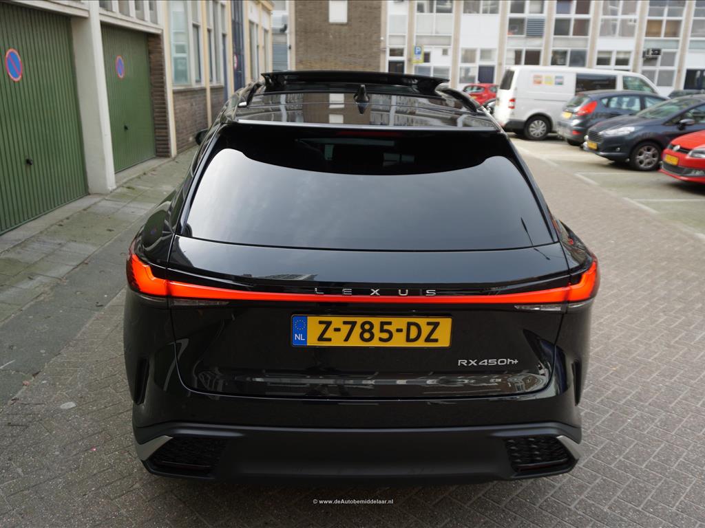 Lexus RX 450h+ F Sport Design | Premium Graphite Black | Panoramadak | Adaptieve cruise control + lane departure + rijstrookwissel hulp | Vollederen interieur | Stoel- en stuurverwarming + stoelventilatie | Premium audio/ Apple Carplay/ Android Auto | Alarm met volgsysteem | Rondomzicht 360 camera | Sfeerverlichting | Eerste eigenaar en dealer onderhouden | Fabrieksgarantie 02/2027 | Garantie hybride batterij en hybride systeem 2/2034 | achterasbesturing, achterbank in delen neerklapbaar, airco separaat achter, alarmsysteem, Anti Blokkeer Systeem, Apple Carplay/Android Auto, armsteun achter, audio installatie premium, autonome parkeerfunctie, bandenspanningscontrolesysteem, bestuurdersairbag, Bluetooth, bots herkenning en activatie, bots waarschuwing systeem, buitenspiegels verwarmbaar, bumpers in carrosseriekleur, camerabeeld in binnenspiegel, centrale airbag voor, connected services, cruise control adaptief met Stop&Go, DAB, dakrails, dodehoek detectie, draadloze telefoonlader, electronic climate control, elektrisch bedienbare achterklep met sensorsturing, elektrisch verstelb. bestuurdersstoel met geheugen, elektrisch verstelbare passagiersstoel, elektrisch verstelbare stoel(en) met geheugen, Elektronisch Stabiliteits Programma, elektronische remkrachtverdeling, geluid- en warmtewerend glas, getint glas en zonwering achter, grootlichtassistent, head-up display, hemelbekleding donker, hoofd airbag(s) achter, hoofd airbag(s) voor, keyless entry/start, knie airbag(s), LED achterlichten, LED dagrijverlichting, LED koplampen adaptief, lederen bekleding, lendesteun(en) verstelbaar, lichtmetalen velgen 21", mistlampen voor, multimedia scherm standaard, navigatiesysteem full map, oplaadmogelijkheid, parkeer assistent, parkeersensor voor en achter, passagiersairbag, regensensor, rijstrooksensor met correctie, schakelpaddles, sfeerverlichting, sportief interieur, spraakbediening, stoel ventilatie voor, stuur leder, stuur multifunctioneel, stuur verwarmd, verkeersbord detectie, vervolgbotsing preventie, volledig digitaal instrumentenpaneel, voorstoel(en) elektrisch verstelbaar, voorstoelen verwarmd, zij airbag(s) achter, zij airbag(s) voor, zonnescherm achterruit, elektrisch glazen panorama-dak, premium metaalkleur.