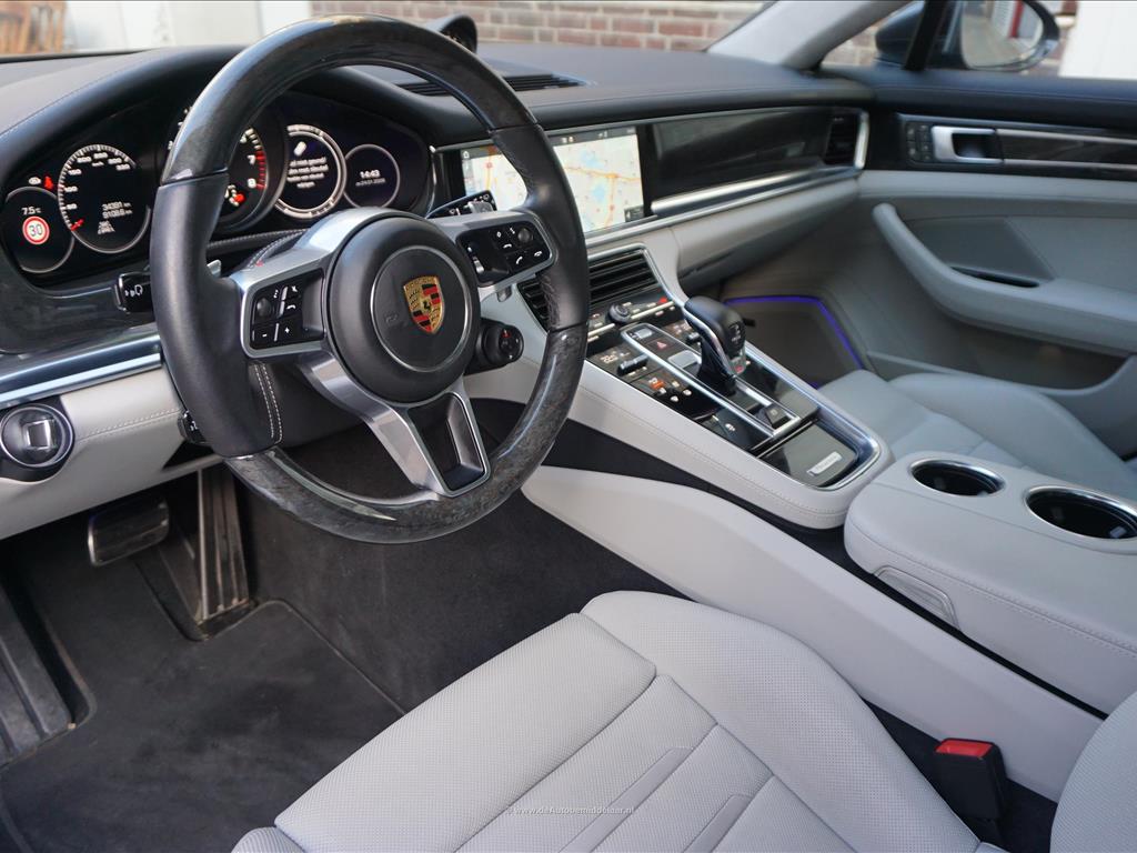 Porsche Panamera 4.0 GTS | V8 BiTurbo | Porsche Dealer onderhouden | Panoramadak | Achterasbesturing | Sport Chrono | BOSE Premium Surround-Sound-System/ DAB/ Apple CarPlay/ Android Auto | 4x Memory/ 4x Stoelkoeling en -verwarming/ Verwarmd stuurwiel | Soft Close portieren | Sfeerverlichting | 21inch Exclusive Design Sportvelgen | MATRIX LED | 360 (TOPVIEW) camera | Adaptieve cruise control + Lane Departure met stuurcorrectie | Adaptieve luchtvering met niveauregeling | Adaptieve Sportstoelen Plus | Comfortstoelen achter | 4 zones gescheiden climate control | Vollederen Bi Color interieur Zwart/ Krijt | Alcantara Hemelafwerking | Antraciet Berkenhout interieur afwerking | Optioneel 1 jaar garantie € 2.999,- | ALarm Klasse 1 + klasse 3 + klasse 5 | achterbank in delen neerklapbaar, achterspoiler, adaptief demping systeem, klasse 1(startblokkering), alarmsysteem, Anti Blokkeer Systeem, Anti doorSlip Regeling, Apple Carplay/Android Auto, armsteun achter, armsteun voor, audio installatie, bandenspanningscontrolesysteem, bestuurdersairbag, binnenspiegel automatisch dimmend, Bluetooth, buitenspiegel(s) automatisch dimmend, buitenspiegels elektr. met geheugen, buitenspiegels elektrisch inklapbaar, buitenspiegels elektrisch verstel- en verwarmbaar, buitenspiegels met verlichting, centrale vergrendeling met afstandsbediening, connected services, cruise control, dimlichten automatisch, DVD speler, electronic climate control, elektrisch bedienbare achterklep, elektrisch verstelbare stoel(en) met geheugen, Elektronisch Stabiliteits Programma, elektronische remkrachtverdeling, grootlichtassistent, hoofd airbag(s) achter, hoofd airbag(s) voor, keyless start, knie airbag(s), koplampen adaptief, kunstlederen/microvezel bekleding, LED achterlichten, LED dagrijverlichting, LED koplampen, lichtmetalen velgen 21 inch, luchtvering, multimedia-voorbereiding, navigatiesysteem full map + hard disk, parkeersensor voor en achter, passagiersairbag, regensensor, schakelpaddles, sportonderstel, sportstoelen, sportstuur, sportuitlaat, spraakbediening, start/stop systeem, stuur leder, stuur multifunctioneel, stuurkolom elektrisch verstelbaar met geheugen, voorstoelen verwarmd, warmtewerend glas, WiFi, zij airbag(s) voor, achterasbesturing, achterruitwisser, achterstoelen elektrisch verstelbaar, achterstoelen verwarmd, airco separaat achter, audio installatie premium, DAB, dodehoek detectie, elektrisch glazen panorama-dak, elektrisch zonnescherm achterruit, extra getint glas achter, houtafwerking interieur, lederen interieurdelen, matrix LED koplampen, rondomzicht camera, sluitbekrachtiging, stoel ventilatie voor en achter, stuur met houtinleg, stuurbekrachtiging snelheidsafhankelijk, zij airbag (s) achter, rijstrooksensor met correctie, verkeersbord detectie, Autonomous Emergency Braking, bots waarschuwing systeem, cruise control adaptief met Stop&Go, file assistent .